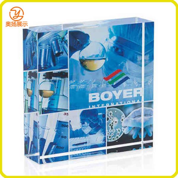Shenzhen factory customized design acrylic paper weight with block Images |